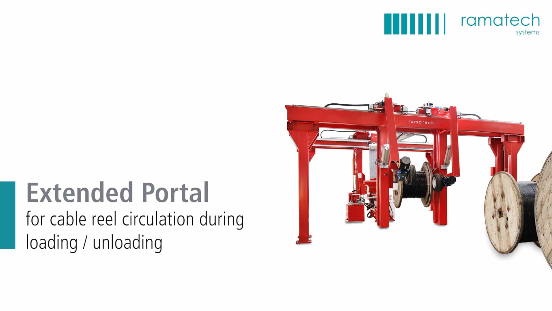 Ramatech’s stretched winding gantries are automated cable winding machines for cable drums. A winding line consists of an unwinding gantry and a winding gantry with a stationary laying unit. In contrast to the electric and hydraulic gantry series, it is not the laying unit that traverses with the cable, but the clamped target drum.